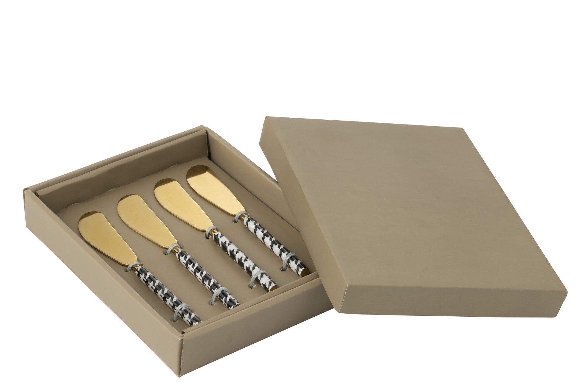 Boîte de 4 couteaux à beurre dorés motif pied-de-poule – Acier inoxydable durable | J-Line