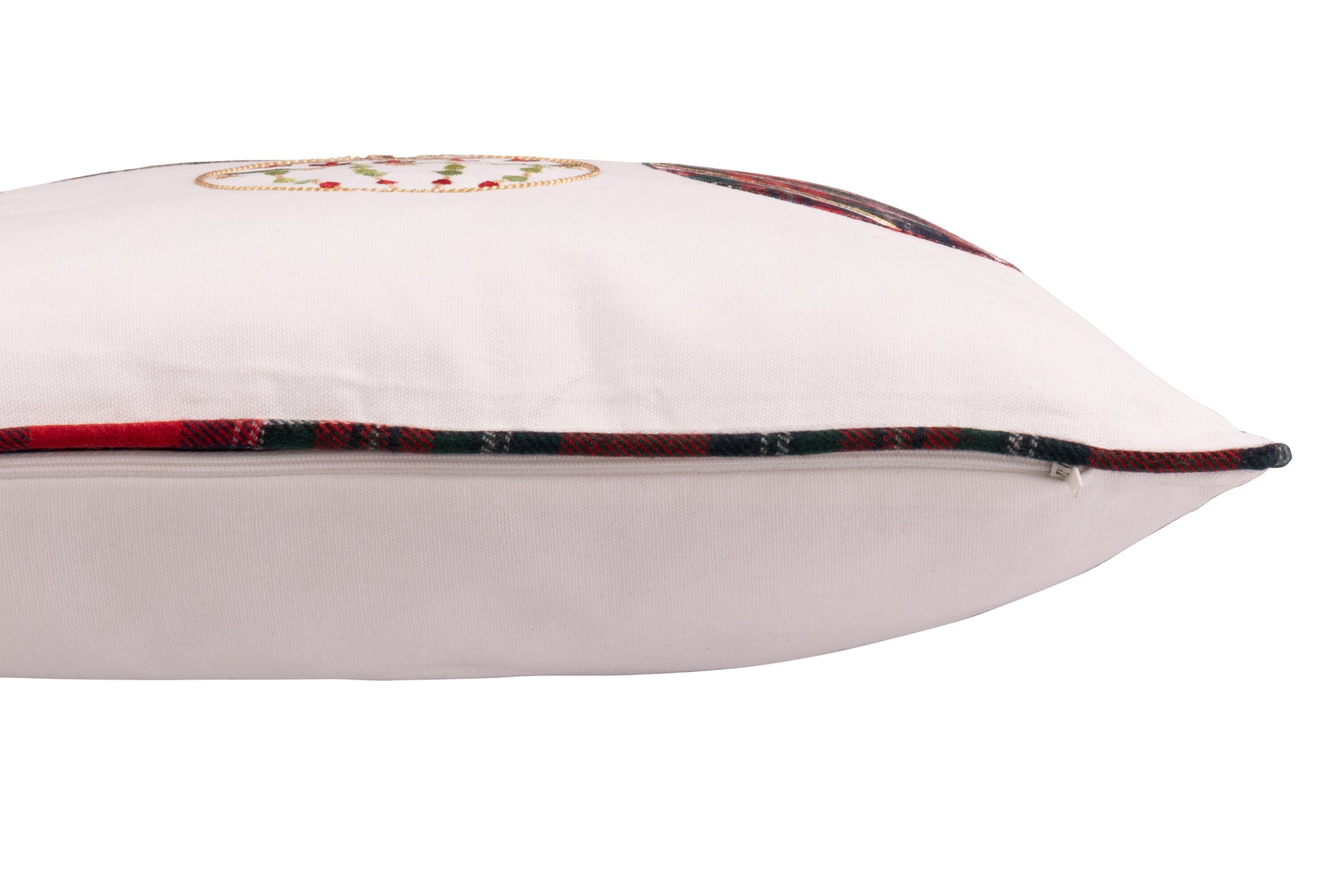 Coussin Boules de Noël – Coton Blanc & Rouge, Déco Cosy Hiver | J-Line