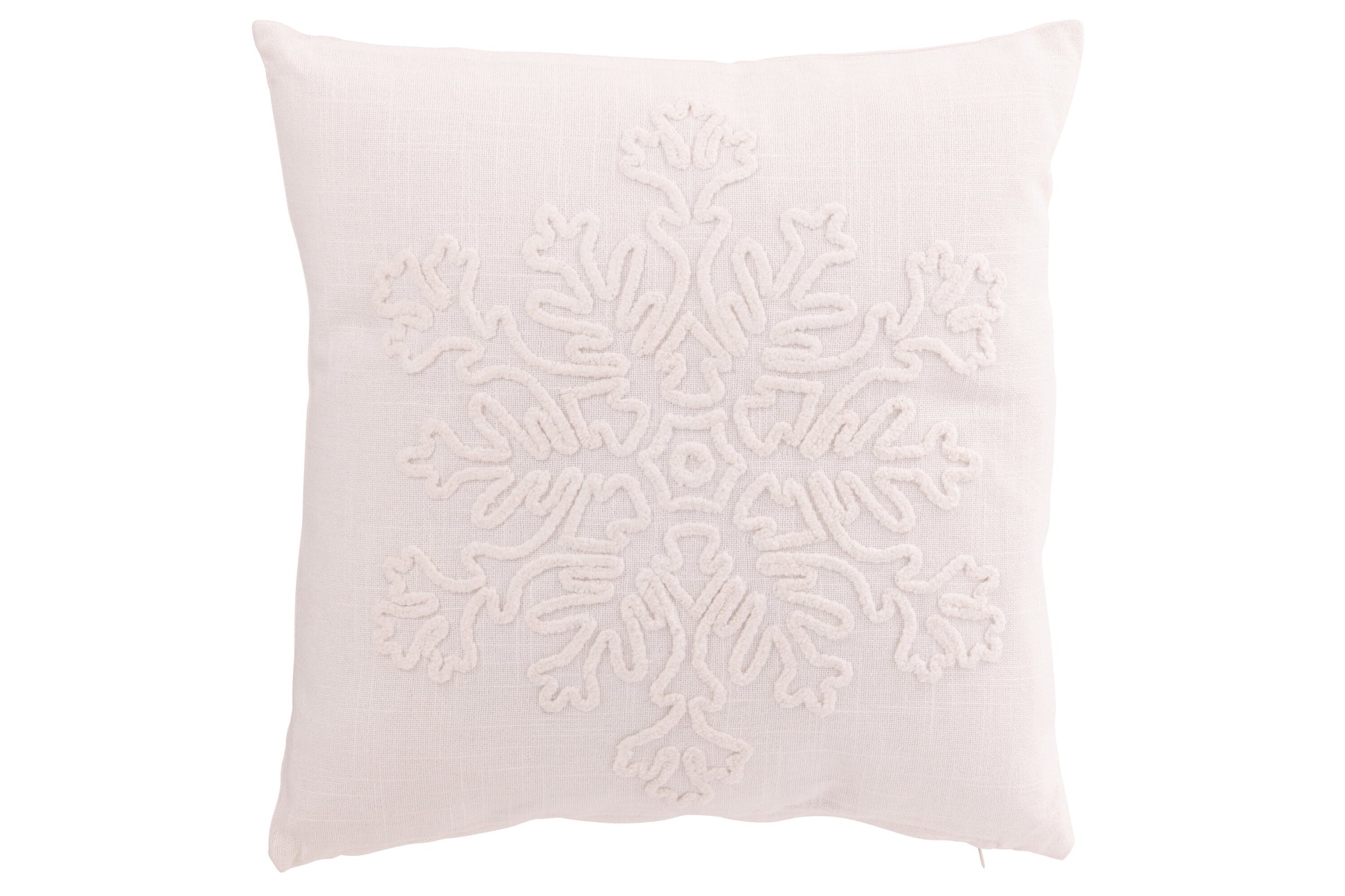 Coussin Flocon de neige en coton blanc – Design minimaliste, déco d'hiver | J-Line