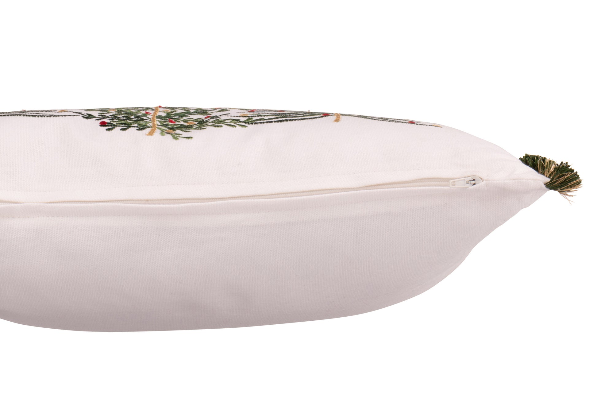 Coussin sapins de Noël en coton blanc & vert foncé – Design minimaliste, déco cosy Noël | J-Line