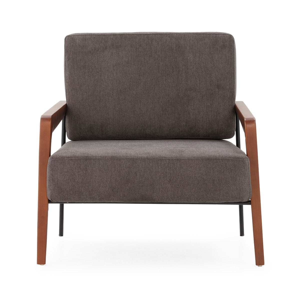 SUR DEVIS - Fauteuil 85x71,5x75 Bois de hêtre/Métal/Tissu -- Noyer/Noir/Gris Foncé - Club Pelita
