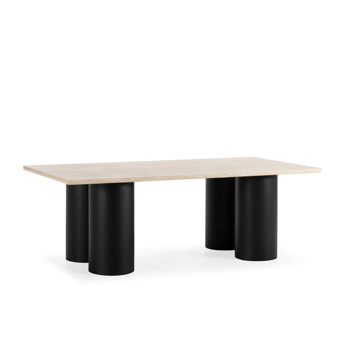 SUR DEVIS - Table de Salle à Manger 220x110x76 Bois de Chêne/Marbre Travertin -- Noir/Crème - Club Pelita
